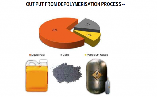In the process of depolymerization, cracking occurs with the admixture catalyst. The catalyst lowers the required reaction temperature. One advantage of the depolymerization process at lower working temperatures is also lower fuel consumption for heating.